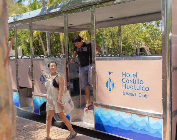 Si te encuentras hospedado en Hotel Castillo Huatulco, te brindamos un servicio exclusivo de transporte hacia nuestro Club de Playa, disponible cada media hora desde las 9:30 a.m. hasta las 5 p.m. Este servicio está diseñado para asegurar tu comodidad, permitiéndote disfrutar de la playa con total conveniencia.