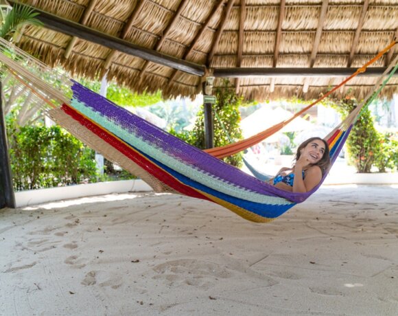 Descubre la hermosa Bahía de Chahué en nuestro Club de Playa. Deja que los niños se diviertan en el chapoteadero o en el área de juegos mientras ustedes se relajan en las hamacas o en los camastros a la orilla del mar.